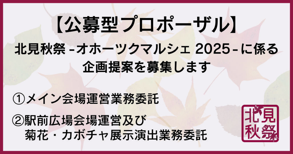• 【公募型プロポーザル】「北見秋祭‐オホーツクマルシェ2025‐」に係る企画提案の募集のお知らせ