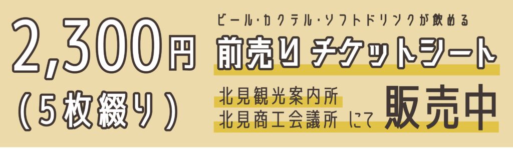 ※ソフトドリンク1杯 現金250円でも販売。当日券1枚500円に合わせて250円で販売
