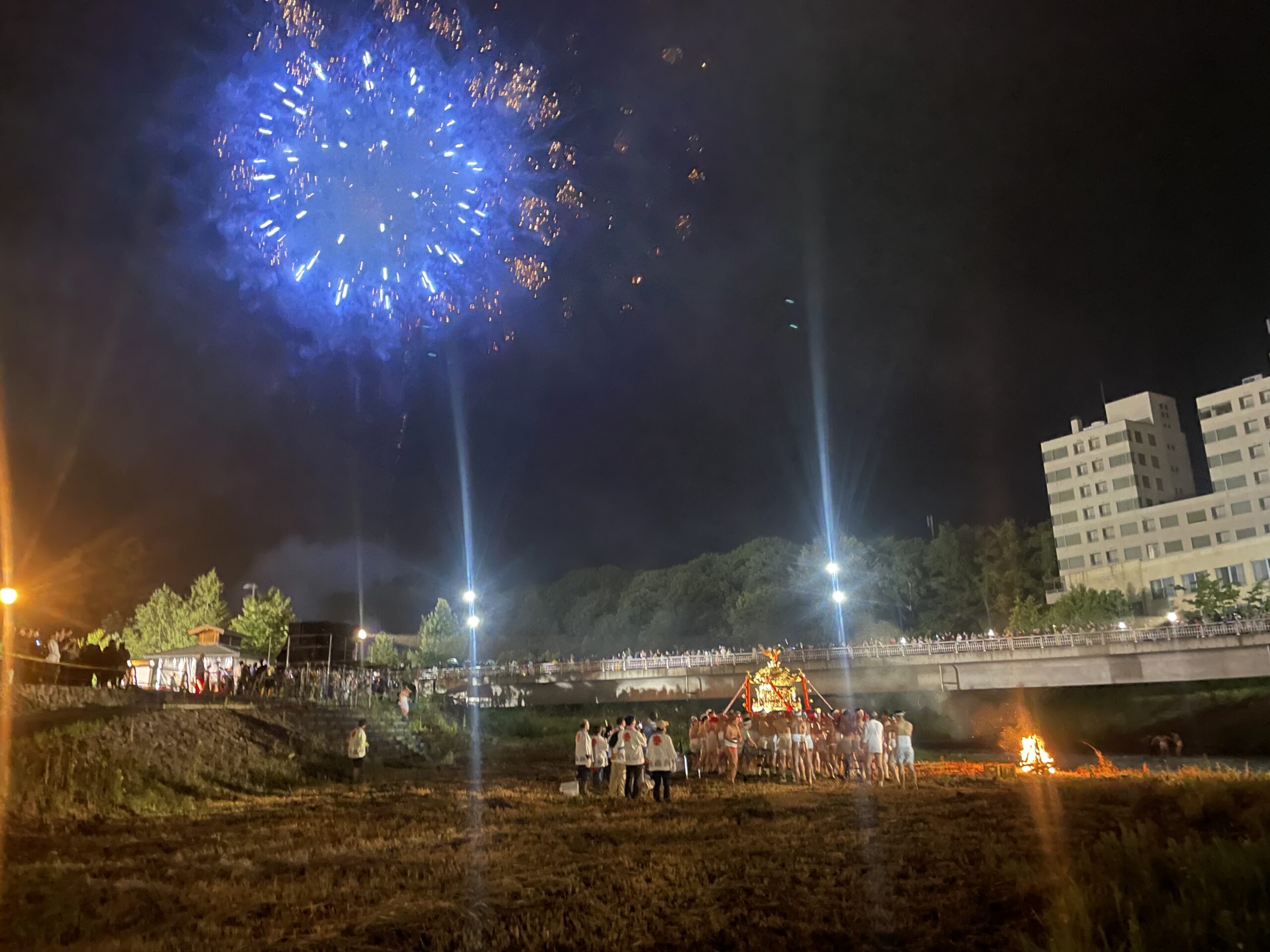勇壮な神輿が温泉街を練り歩き、そのまま無加川(むかがわ)を渡る全国的にも珍しい伝統行事。夏の夜空の下、水しぶきを上げながら進む姿は祭りの最大の見どころです。