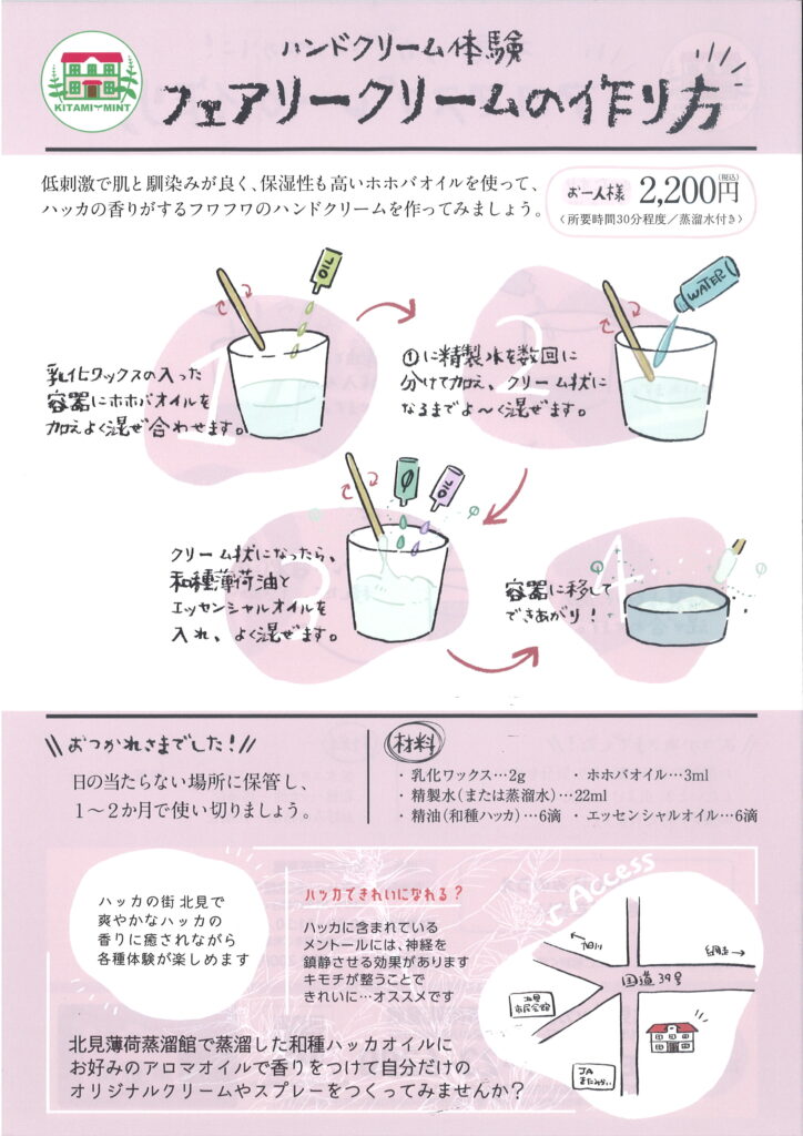 ①和種ハッカを使った アロマクリーム作り体験 <要予約>