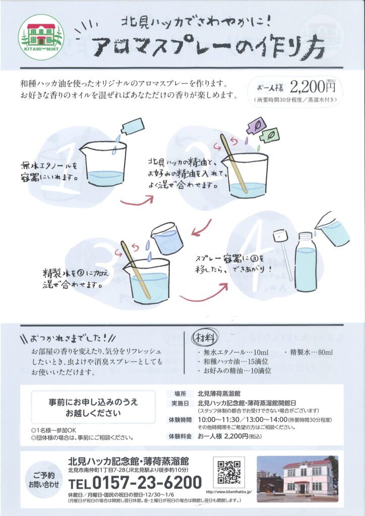 ②和種ハッカを使ったアロマスプレー作り体験 <要予約>
