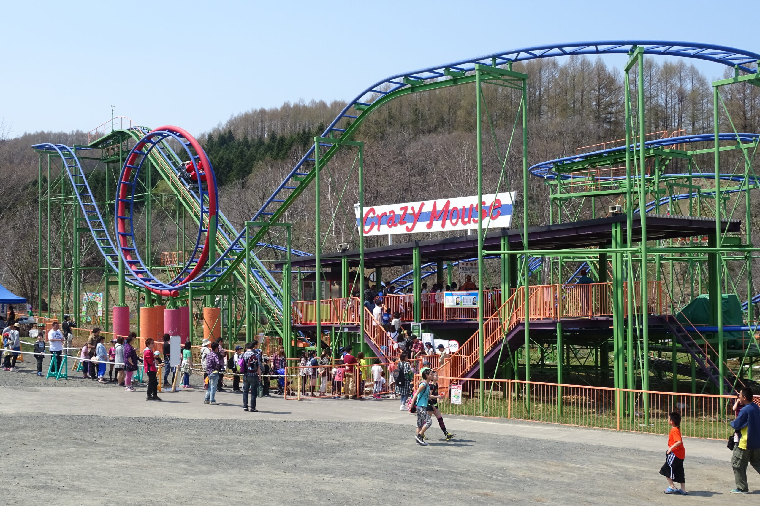 緑の森林に囲まれた大自然の中に、管内最大の大型遊具「クレージーマウス」など、魅力あふれる遊具が楽しめます。隣接した斜面は冬に若松市民スキー場として利用されます。